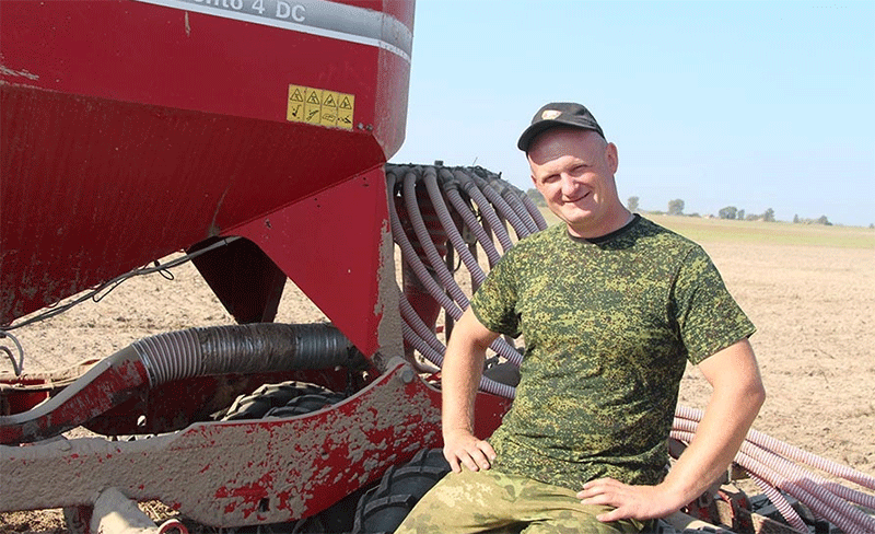 The success of such a complex operation hinges on two factors: skilled personnel and modern equipment. In a display of coordinated field efficiency, two mechanizers work in tandem on a single field. Alexander Belbukhov prepares the seedbed using a new, high-horsepower Belarus tractor equipped with a combined implement that performs three operations simultaneously: plowing, land leveling, and cultivation. This practice of combined tillage, which aligns with the principles of conservation agriculture by reducing passes over the field, saves time, fuel, and minimizes soil compaction. Following closely, Evgeny Sverdlov operates the seeder, placing the seed into the ideal conditions created by his partner.