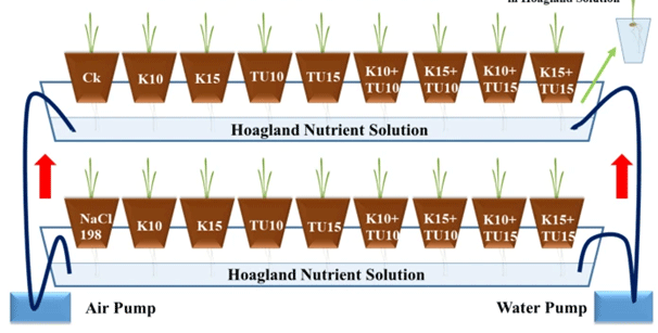 Salt stress poses a severe threat to agricultural productivity worldwide, particularly affecting wheat crops. This study investigates the mechanisms of salt stress impact and proposes an effective mitigation strategy using potassium and thiourea.