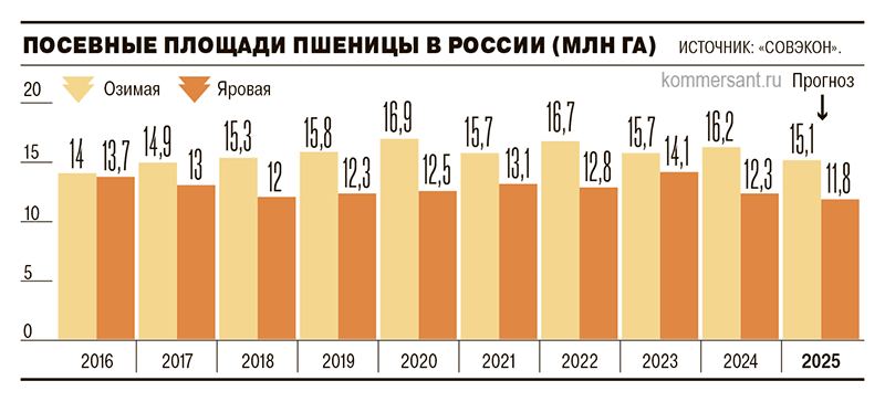 Russia, one of the world’s top wheat exporters, is witnessing a significant decline in spring wheat cultivation. According to SovEcon, the planted area may drop by 4.1% year-on-year (YoY) to 11.8 million hectares (ha)—the smallest in at least ten years. Other analysts, like Albina Koryagina from Neo, predict an even steeper decline of 5.7% (to 11.6 million ha), while Dmitry Rylko of the Institute for Agricultural Market Studies (IKAR) estimates a reduction of over 1 million ha, down to 11.5 million ha, potentially marking a multi-decade low.